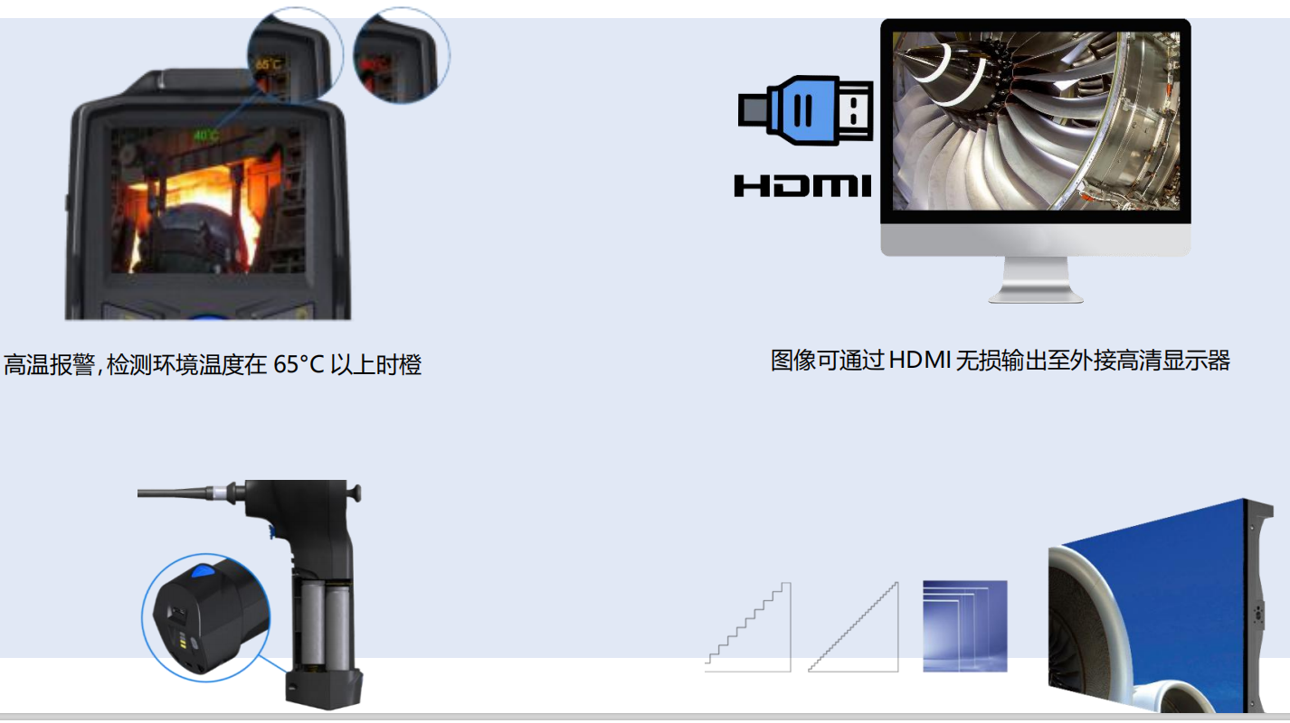 ***清內(nèi)窺鏡采用模塊化設計,主機與手柄可一鍵分離。并且兼容 2.0mm/2.2mm/2.8mm/3.9mm/6mm 的管線系統(tǒng),同時也兼容 3.9mm 側(cè)視管線、6mm 側(cè)視管線、6mm 直側(cè)視管線。產(chǎn)品幾乎滿足了各種檢測現(xiàn)場的需求。