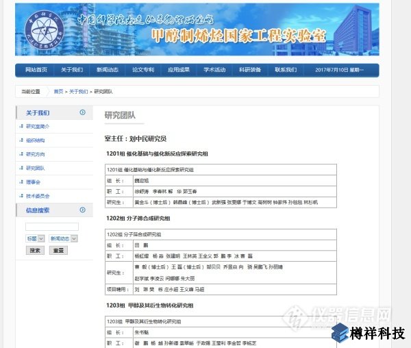 甲醇制烯烴******工程實驗室下屬部分研究組