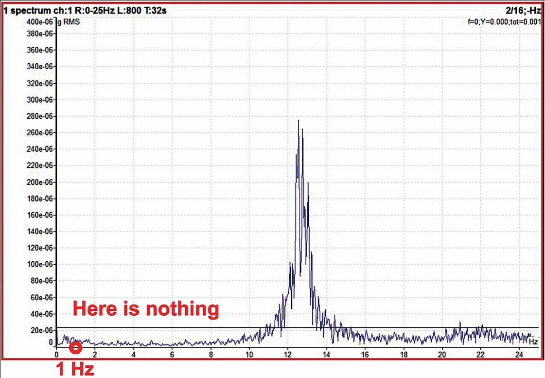 讓我們假設(shè)響應(yīng)函數(shù)是平坦的。大多數(shù)用戶想要一個非常低的頻率限制。他們說:“我必須測量一臺低速機器,我的機器速度僅為30 rpm,我需要測量0.5赫茲。” 如果我問他們?yōu)槭裁?,他們不會回答,因為他們不理解這個問題。讓我舉一個例子:如果我想測量低頻加速度,我可以期望什么加速度水平?例如1g嗎?大多數(shù)人無法想象振動的加速度和速度。每個人都可以想象位移。當您說機器振動+/- 3毫米時,每個人都可以理解。因此,我們可以使用以下公式將加速度轉(zhuǎn)換為位移,將位移轉(zhuǎn)換為加速度:acc [m / s2] = disp [m] *(2×π×速度[Hz])2 g至米。如果速度為30 rpm,則表示0.5 Hz。(不要忘記先將g轉(zhuǎn)換為m / s2。)相應(yīng)的位移水平為1 m。不是一毫米,而是一米。任何機器都無法在這種振動水平下工作。相應(yīng)的速度水平是3200 mm / s,它是125 ips,不可能...現(xiàn)在我假設(shè)位移水平是1 mm。相應(yīng)的加速度水平為0.01 m / s2。為0.001克。如果傳感器靈敏度為100 mV / g,則0.001 g的電壓為0.1 mV。還不算太多 可以測量這樣的電壓水平嗎?答案是否定的,因為現(xiàn)場的常規(guī)傳感器噪聲水平為0.2至0.4 mV。對于這種噪聲,很難測量到0.1 mV,因為它低于噪聲水平。但是,讓我們回到基本問題。為什么要在0.5 Hz上測量幅度?另一個答案是:“當我想要平衡機器或調(diào)查松動或未對準時,我將需要它。” 是的,在這些情況下,我需要測量速度頻率上的水平,但我不知道誰真正想要這樣做。當速度太低時,您應(yīng)該使不平衡的質(zhì)量達到幾十公斤,以增加振動水平。離心力取決于速度的平方。在30 rpm時,它將非常低。但是用戶說:“不!我不想保持平衡,我想測量滾動軸承的狀況。” 離心力取決于速度的平方。在30 rpm時,它將非常低。但是用戶說:“不!我不想保持平衡,我想測量滾動軸承的狀況。” 離心力取決于速度的平方。在30 rpm時,它將非常低。但是用戶說:“不!我不想保持平衡,我想測量滾動軸承的狀況。”